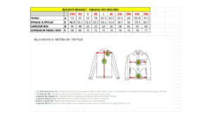 tableau des tailles et des mesures